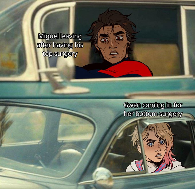 Peter couldn't handle the he/him pussy some random markiplier meme inspired me to draw this #spiderdads #SpiderVerse #MiguelOHara #PeterBParker