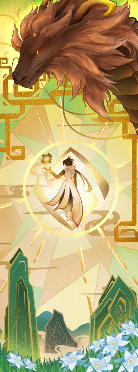 !!Click to see full drawing!! A great pleasure to draw #Zhongli from #Genshinlmpact 🤩 Did my best to honor him in a style similar to my Venti's drawing. Hope you like it! #zhonglifanart #genshinimpactfanart #Liyue #Archon #Exuvia #dragon