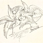 3 13 「隠す」 とある都では、頭部に羽が生えている羽人という種族がいたらしい。 昔は多くの羽人がいたが、「彼らの羽が妙薬になる」と根も葉もない噂により多くの羽人が被害に遭った。 今では羽人を都で見かけることはできない。 #創作 #オリジナル #お絵描き #アナログ絵 #ペン画 20/05/29 00:58