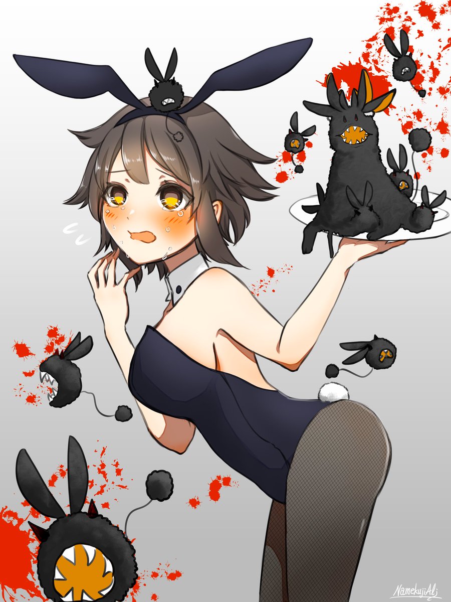 ばにぃ。 バニーの日(8/2)遅刻イラスト。 過度なセクハラや難癖つけてくると注文した酒や料理が変化して客に襲いかかる怪異。 1度目は噛み付くだけ、2度目は完全に食い尽くす。 #創作 #イラスト #オリキャラ #女の子 #バニー