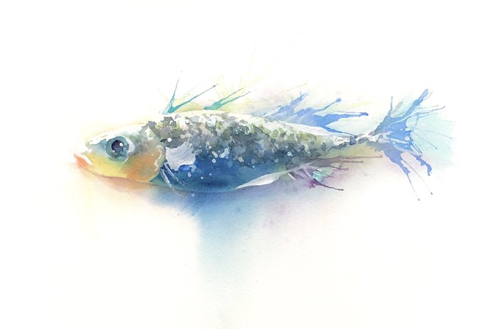 本日のお魚、水彩画。 日本古来の美しい淡水魚ちゃんです。 第1層は滲ませるとして、 第2レイヤーって何するん❓ ていうのが、やっとわかってきた。 そして、紙面だけ白くして、色は再現する写真加工法もわかってきた。 #水彩 #水彩イラスト
