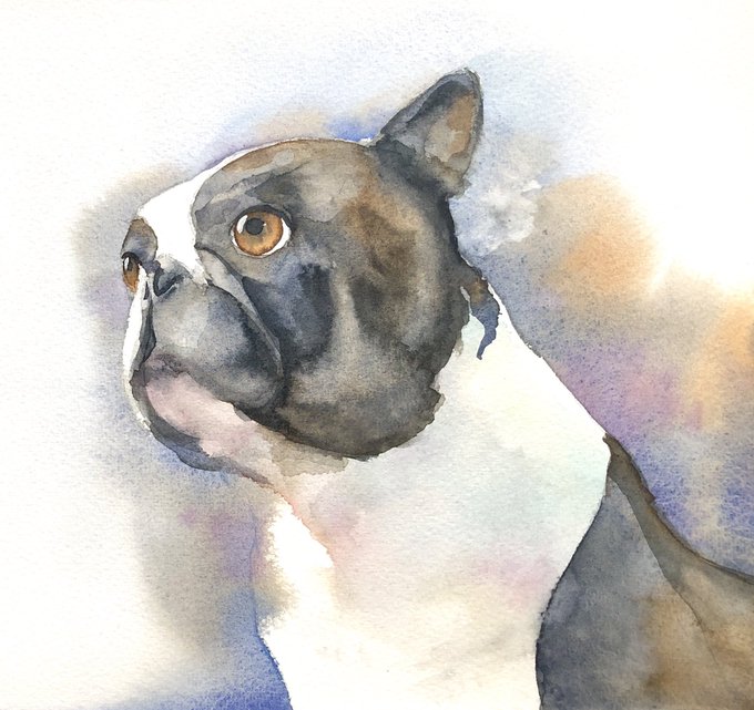 今日の水彩画。 デッサンは褒められたけど、 色塗るごとに失速した わんこちゃん🐕🦺 黒はウルトラマリンとバーントシェンナ、という呪文を覚えた。 イッヌかわいいよイッヌ💕 #水彩 #水彩イラスト #犬