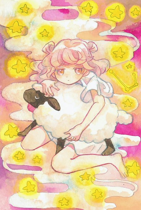 今夜はひつじと夢の中で🐏 #透明水彩 #イラスト #お絵描き