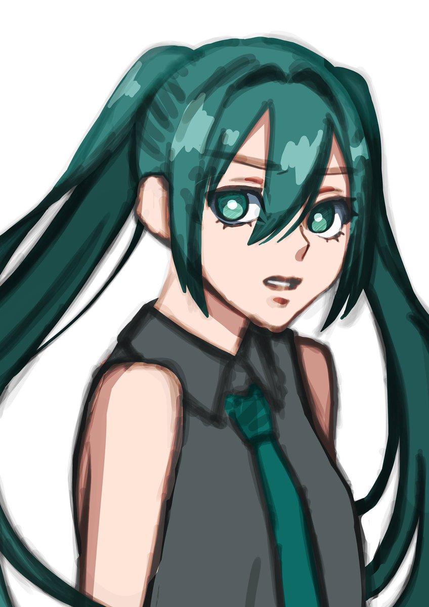 #沼田のほぼ日絵 #らくがき #絵描きさんと繋がりたい #初音ミク #初音ミクイラスト ( ˊᵕˋ ;).o○(髪飾りとか所々省いてる)