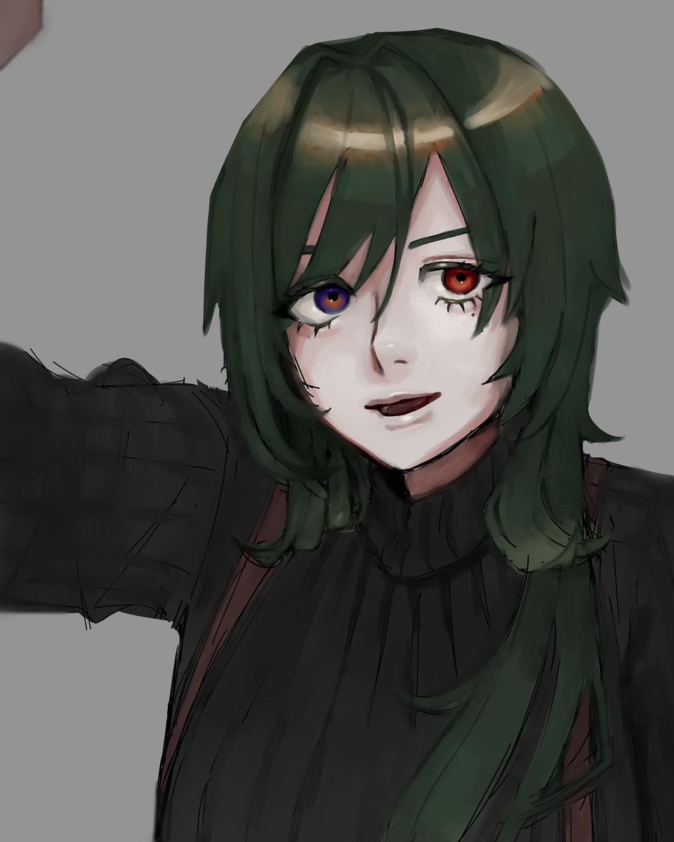 1 5 ここまで進んだ(遅) #イラスト #wip おてて描き加えて色置いてあーだこーだする 22/10/27 23:12
