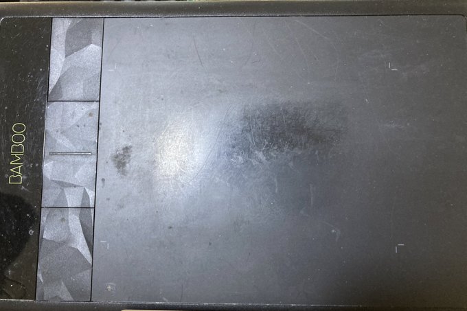 傷より何よりきちゃない(10年ぐらい使ってた前ペンタブ) #絵描きのペンタブの傷が見たい