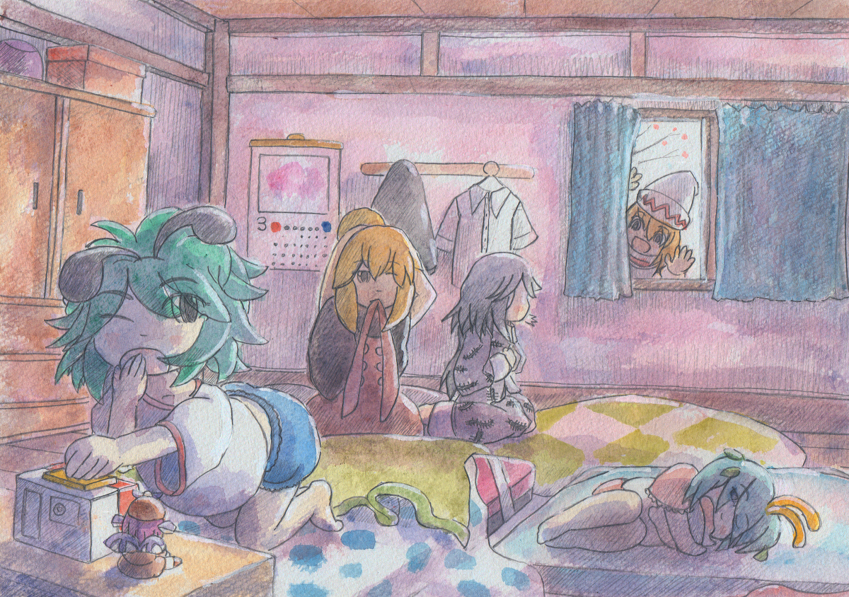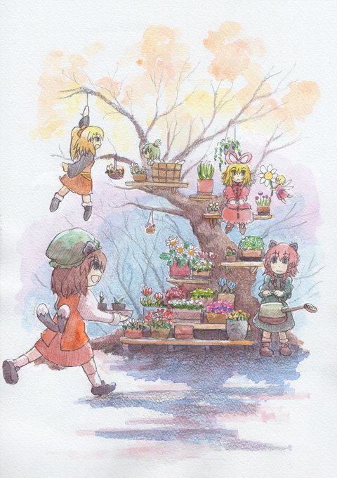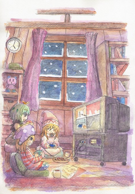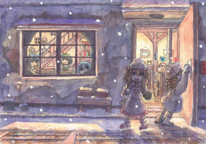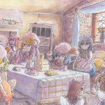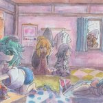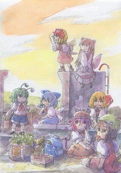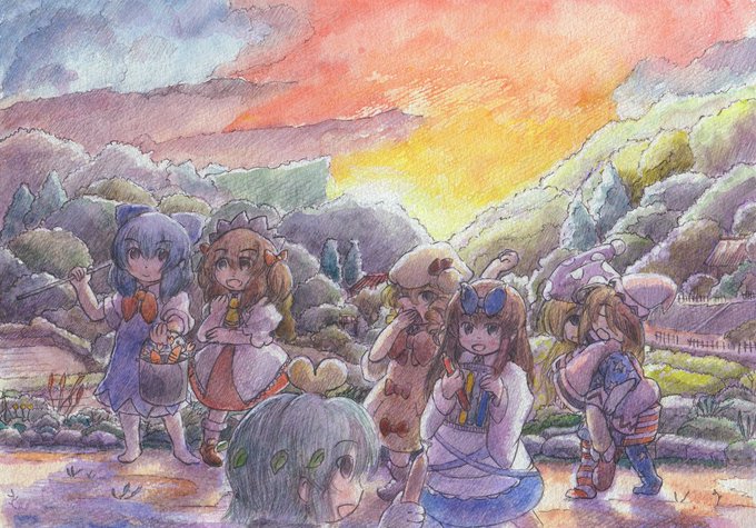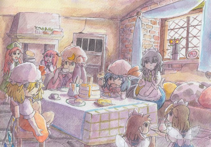 ふわふわホットケーキパーティー #東方 #水彩 #風景 #レミリア・スカーレット #フランドール・スカーレット #十六夜咲夜 #パチュリー・ノーレッジ #紅美鈴 #小悪魔(東方Project) #メイド妖精 pixiv.net/artworks/10687…