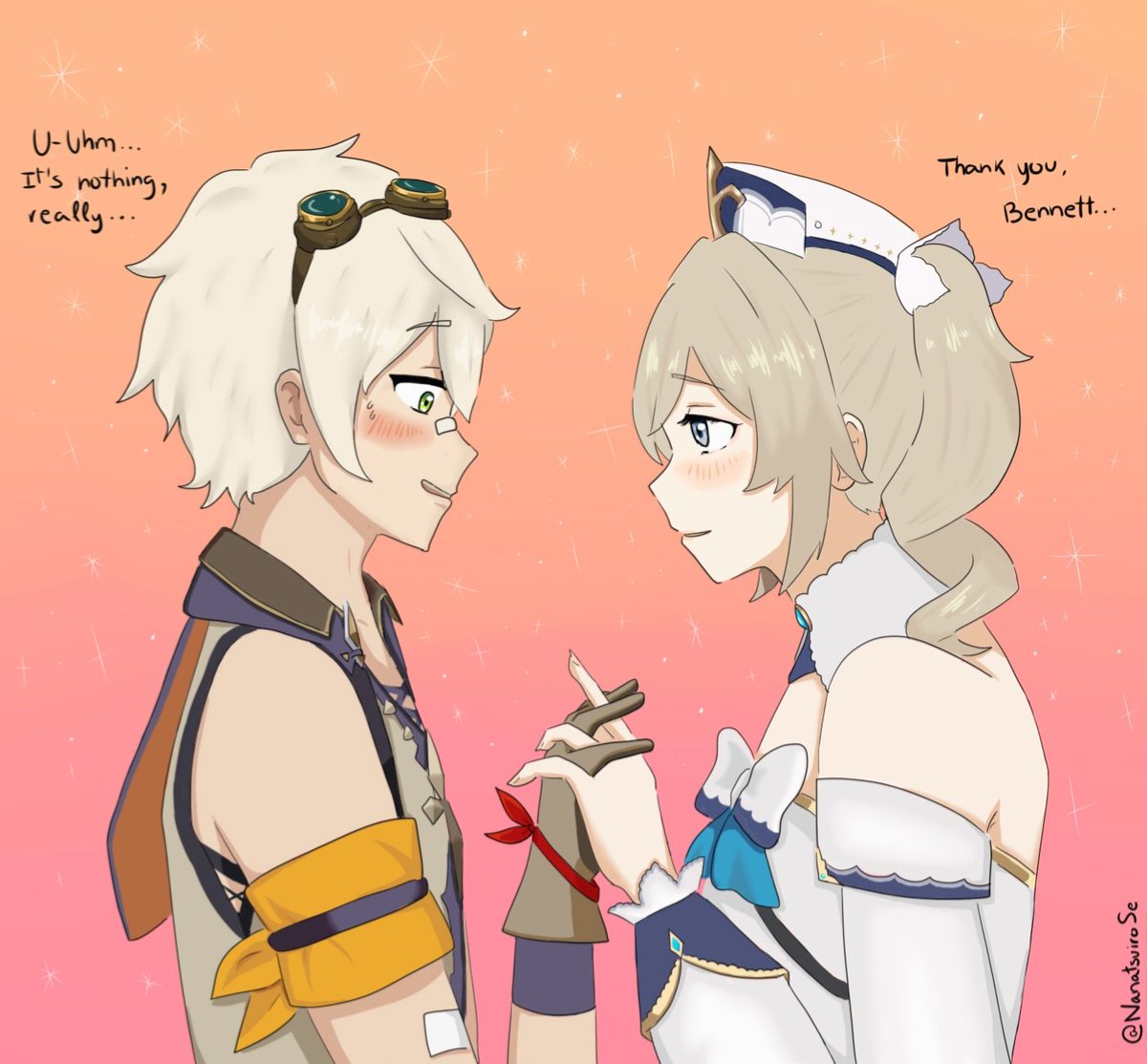 [Uploading this here with a different bg!!] Barbara and Bennett live in my mind rent free 😔❤️ I should draw them more often omg #GenshinImpactFanart#ベネバラ