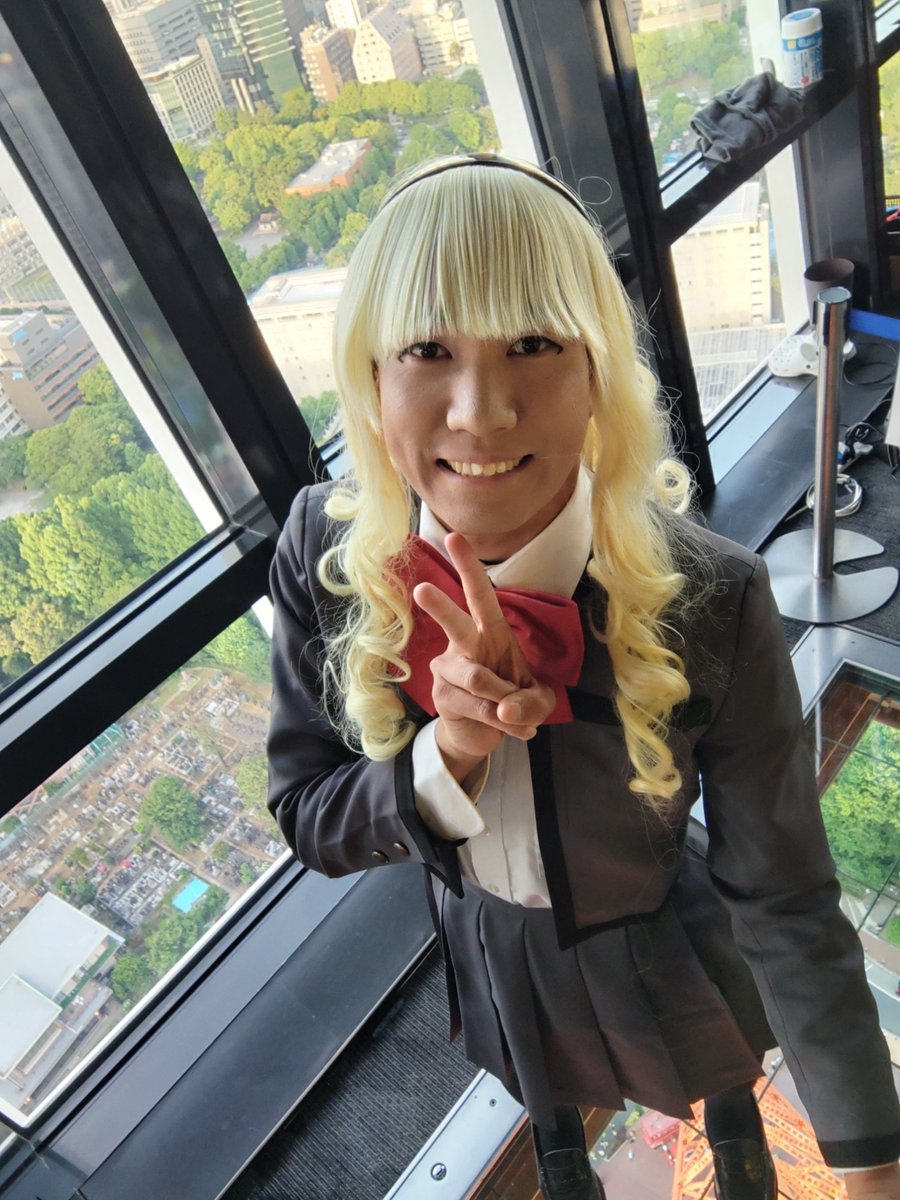[COSSAN速報]後半戦、ウィッグ等を交換してクロちゃんになったよ。 19時ぐらいまで回っているので、引き続き交流・撮影はお気軽にどうぞ。 #COSSAN #COSSAN東京タワー #スタァライトコスプレ