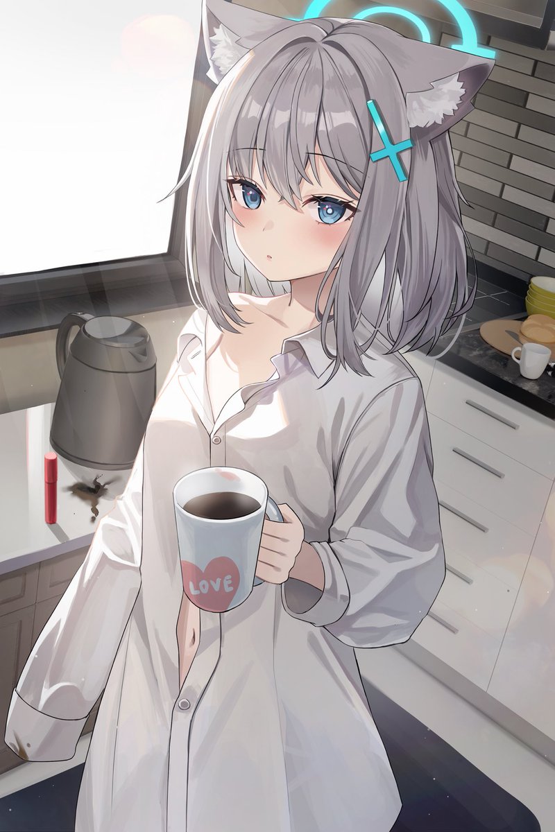 #ブルアカ 「ん... おはよう。 先生、これ… 一緒に飲む?」
