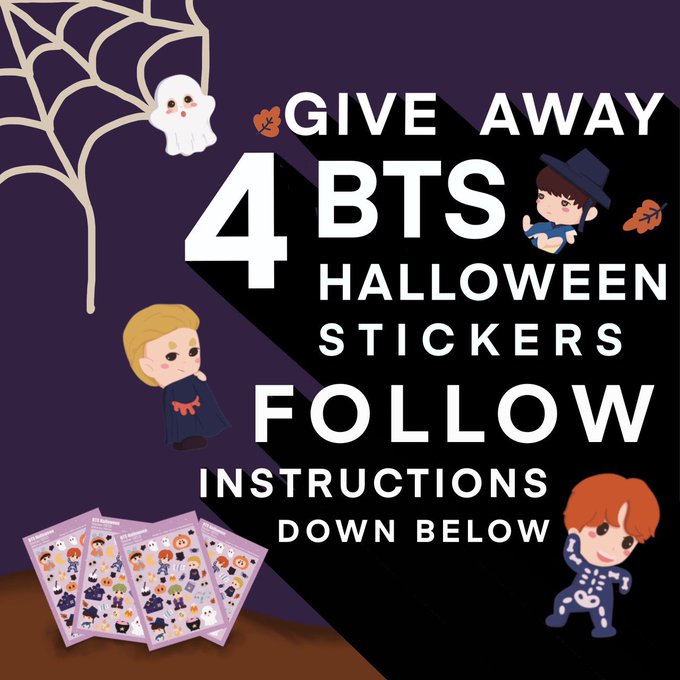 [Pls RT] BTS Halloween Sticker🎃💜 size A5 .ราคา 80 บาท / แผ่น ♡ Pre-order: DM มาได้เลยค่าา ♡ เราฝากขายในงาน #FINEBTSFANART ด้วย ฝากเอ็นดูเด็กๆด้วยน้าคุ๊บ🥺🙏🏻✨ ___ มีของแถมให้ทุกออเดอร์นะคะ รอลุ้นตอนได้ของเลย! #btsfanart #bts #ตลาดนัดบังทัน #ตลาดนัดbts #ตลาดนัดรถไฟบังทัน