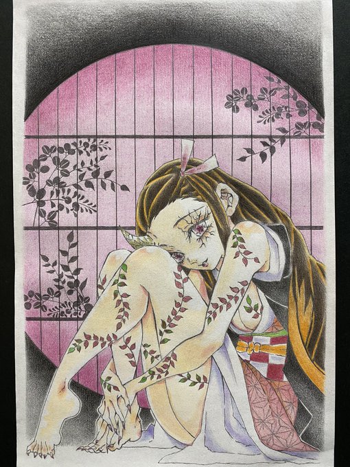 禰󠄀豆子お誕生日おめでとぉ〜 ٩(๑′∀ ‵๑)۶•*¨*•.¸¸♪🥳🎉✨ 夢中… いや、必死に塗り過ぎて😅 表面うっすら黒い… 😱 #竈門禰󠄀豆子生誕祭2020 #竈門禰󠄀豆子誕生祭2020 #模写 #アナログイラスト #色鉛筆画