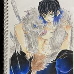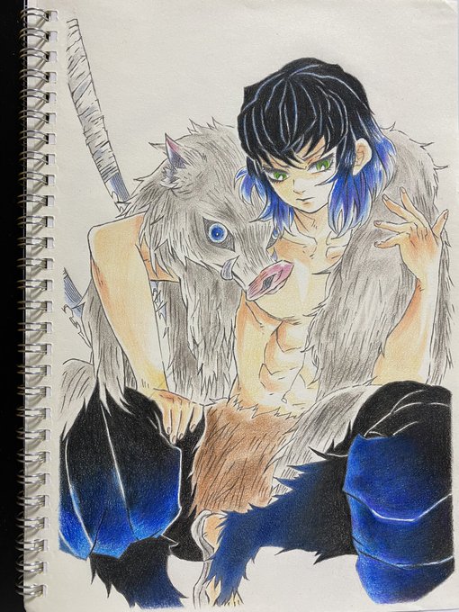 背景塗ってるけど… 着地点がわからない(◞‸◟) やり過ぎて後悔する前に😇 これにてfinish😤 勝手に #鬼滅の刃表紙シリーズ #鬼滅の刃 #鬼滅の刃第7巻表紙 #嘴平伊之助 #アナログイラスト #模写 #色鉛筆画