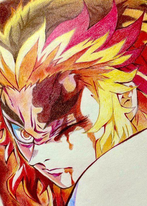 #煉獄杏寿郎生誕祭2022 #煉獄杏寿郎誕生祭2022 描きたい絵柄はあるのだけれど… 間に合わないので過去絵で失礼します🙇♂️ ちょっと加工しました。 (傾けた&モノクロ) 煉獄さんお誕生日おめでとうございます✨🎉✨ #模写 #アナログイラスト #色鉛筆画 #鬼滅の刃 #煉獄杏寿郎
