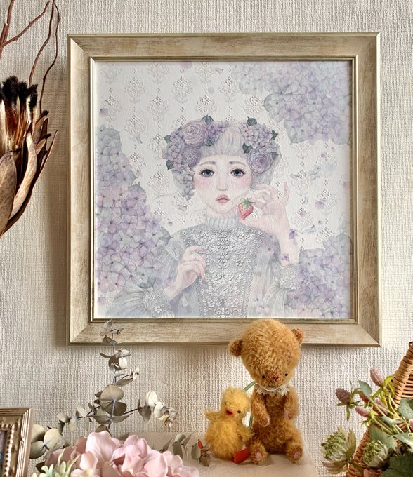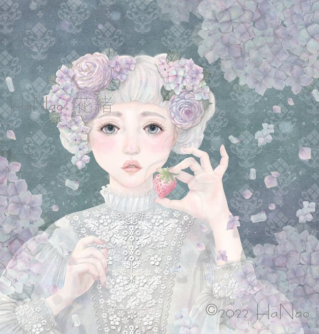 ふと思い立って、灰青バージョンの子にも白苺を持たせてみました。 結構しっくり来るなぁ。 好き♡ #絵描きさんと繋がりたい #イラスト #artwork #絵柄が好みっていう人にフォローされたい