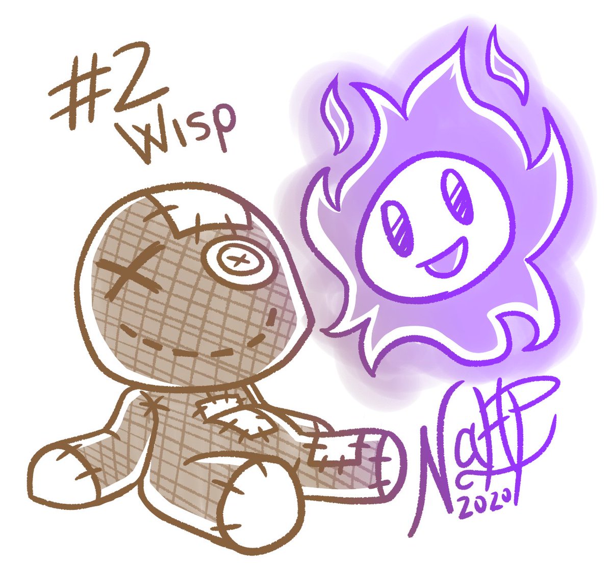 #Inktober2020 Día 2. "Wisp" El traductor dice: "Jirón" La gente dibuja espíritus de fuego Y yo pensé: "¿Por qué no ambos?"