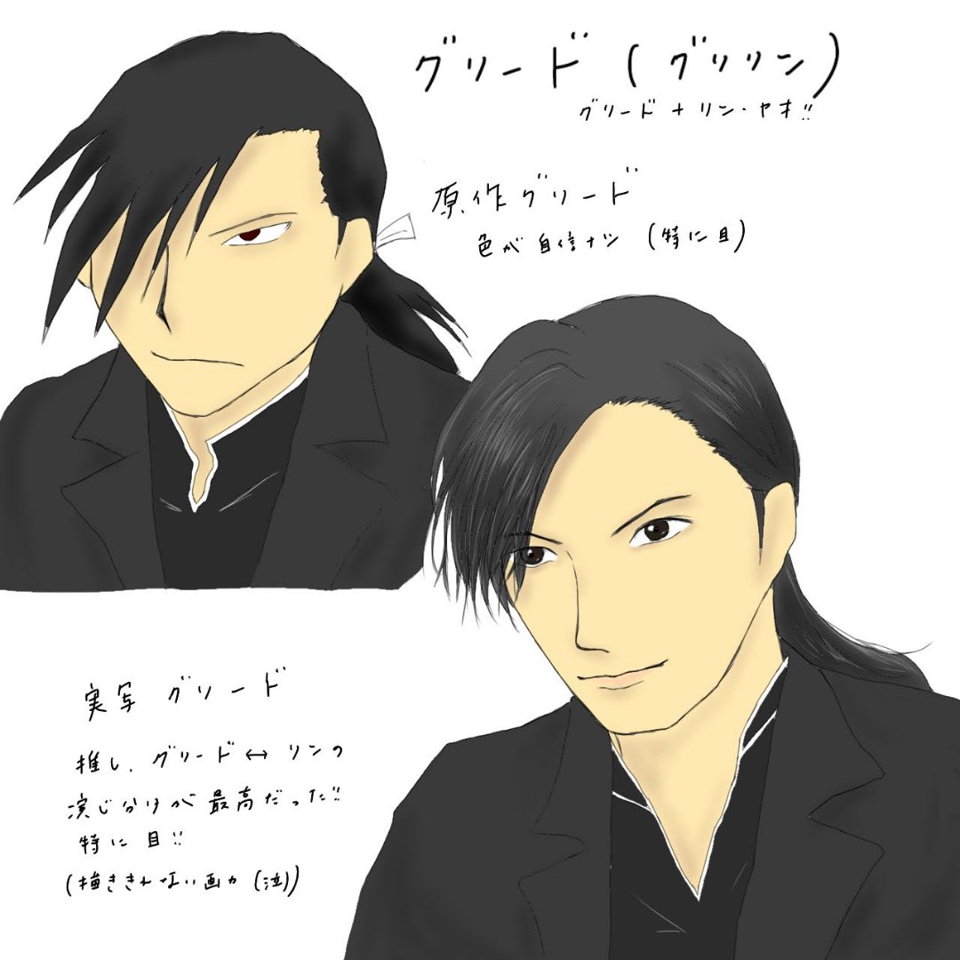 1 1 描き始めめちゃくちゃ苦労したけどなんとか完成?させたやつ。 推しのグリードと原作のグリード。 色味黒系しかなくて色が難しかった。(そして色曖昧) #デジタルイラスト #もっ... sketch.pixiv.net/items/44708610… 22/08/14 22:54