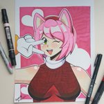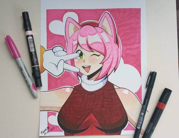 Human Amy Rose inspired by @DigiCheeze lovely rendition of her! . Markers on cardstock (9" x 12") . #Sonic #SonicTheHedgehog #fanart