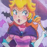 💜🧡🦇 Halloween Peach! 🦇🧡💜 Ngl, I think it turned out cute! #Nintendo #PrincessPeach #fanart #traditionalart