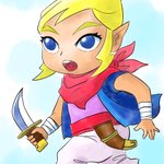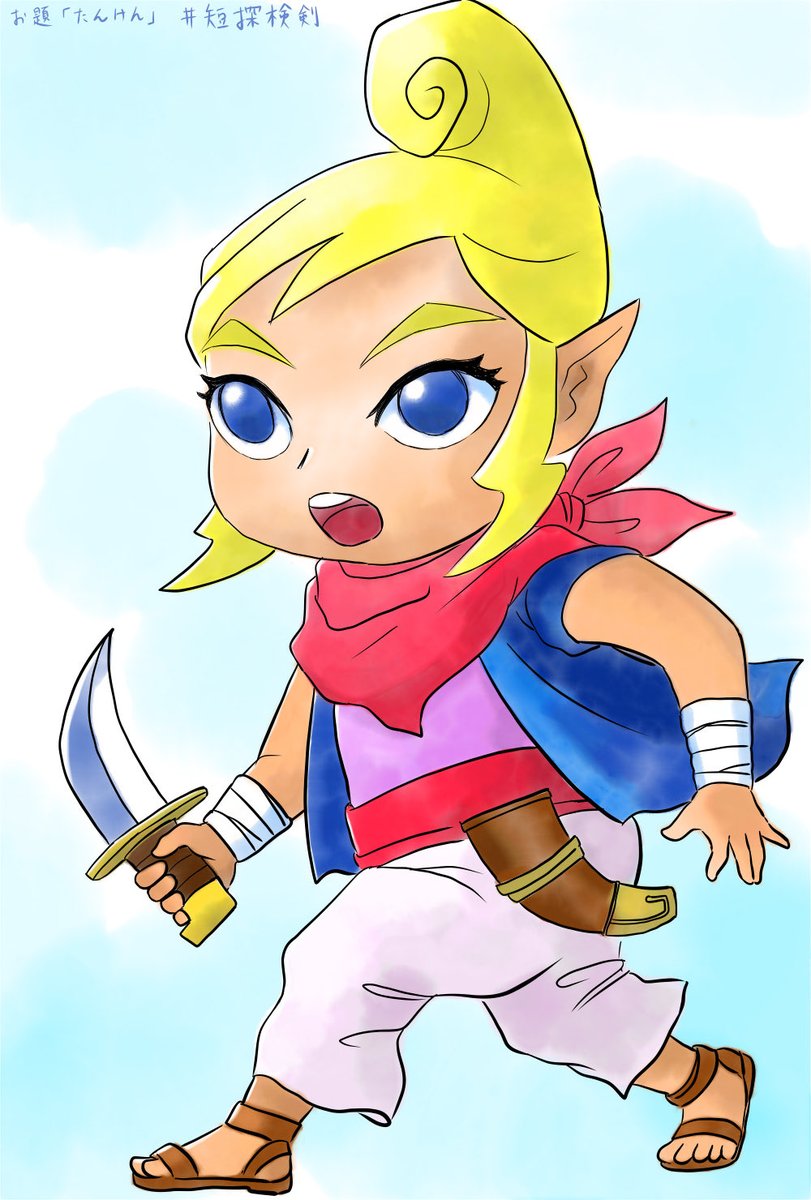 お題「たんけん」 ゼルダの伝説風のタクト、テトラちゃんを描きました。短剣を持っています。Adobe Fresco で作成しました。色塗りは水彩で、じわじわにじむのが楽しかったです。 #短探検剣 #AdobeFresco