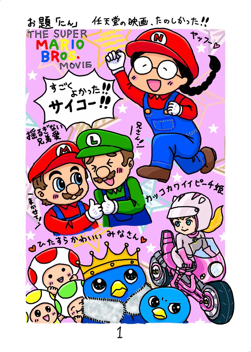 お題「にん」 任天堂の映画、THE SUPER MARIO BROS.MOVIE がとても良くて感動したので絵を描きました。もう一回映画館に観に行きたいです。 アイビスペイントで作成しました。ああ本当に良い映画でした🎞️ #にんきょうにんぎょう