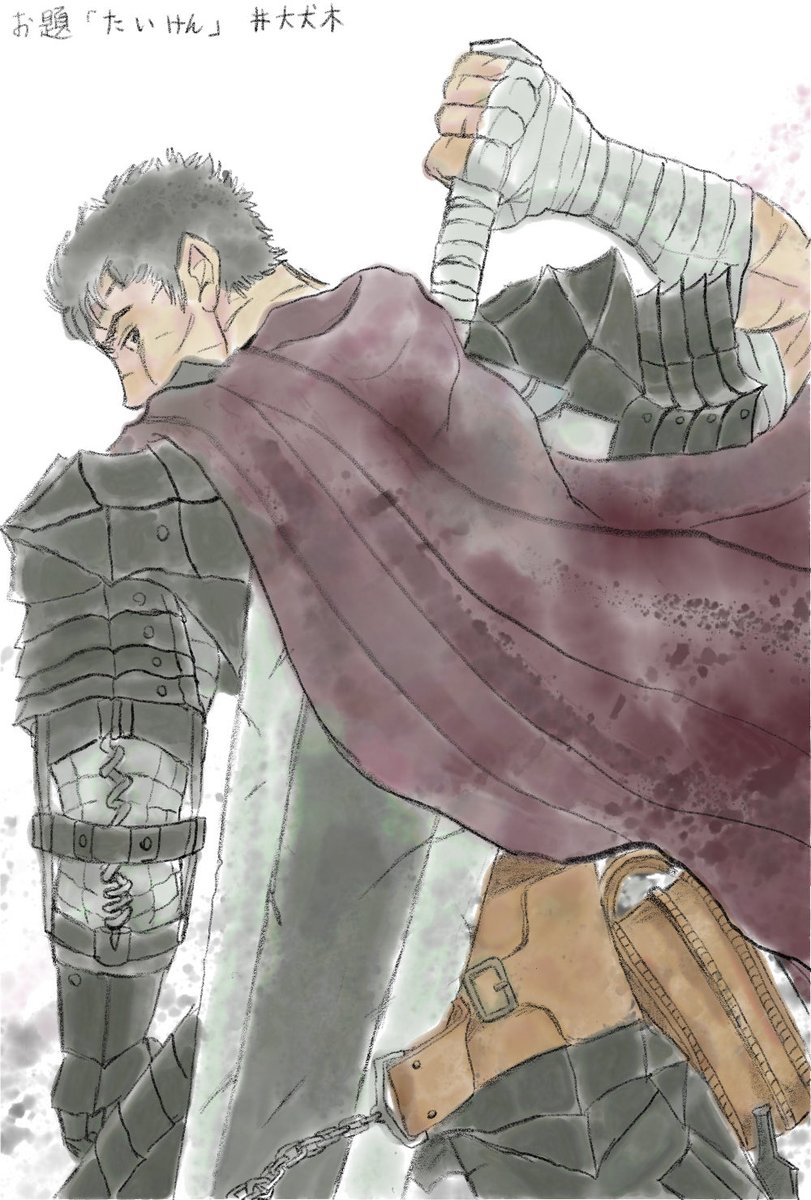お題「たいけん」 漫画『ベルセルク』29巻の表紙のガッツを描きました。 数冊読み返したのですが、三浦先生の絵も物語も最高だなあと思いました。胸が熱くなります。Adobe Fresco で作成しました。 #大犬木 #AdobeFresco