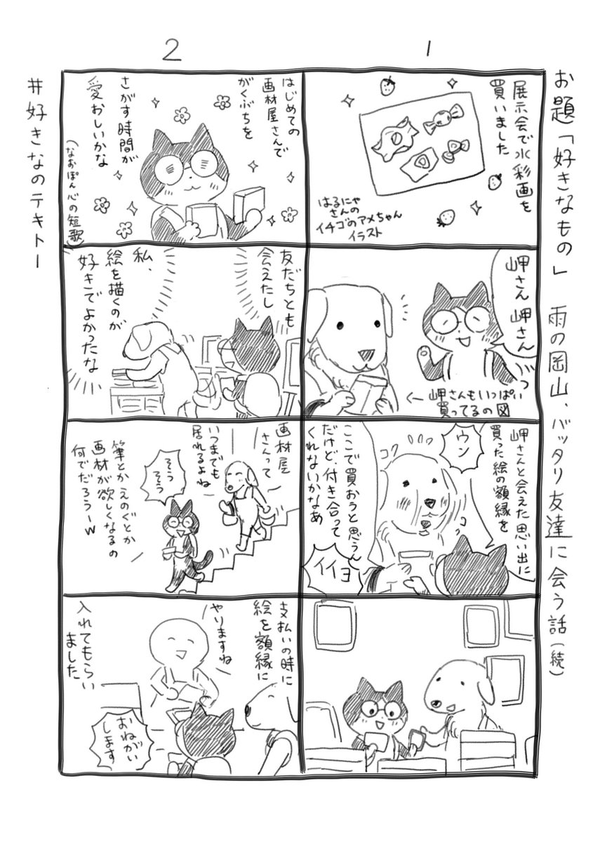 #今月描いた絵を晒そう 会場を去るとそのままお別れ、、、いや、引き留めようと、岬さんに喫茶店に連れて行ってもらい、持ってきたiPadのAdobeFrescoで、2人で絵を描きました。 線画は私、塗りは岬さんです✨