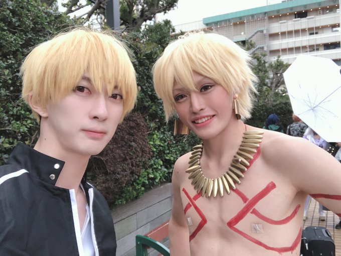 最後はギル様と撮らせていただきました‼️ めっちゃイケメンだし完成度高すぎて緊張したw😱 Fateシリーズの併せができる友達がどんどん増える事を祈って今日は帰ります‼️🏃♂️💨 ギル様(最終再臨)@yomogi0508 #FGOコスプレイヤーと繋がりたい #Fateコスプレイヤーと繋がりたい #アコスタ池袋