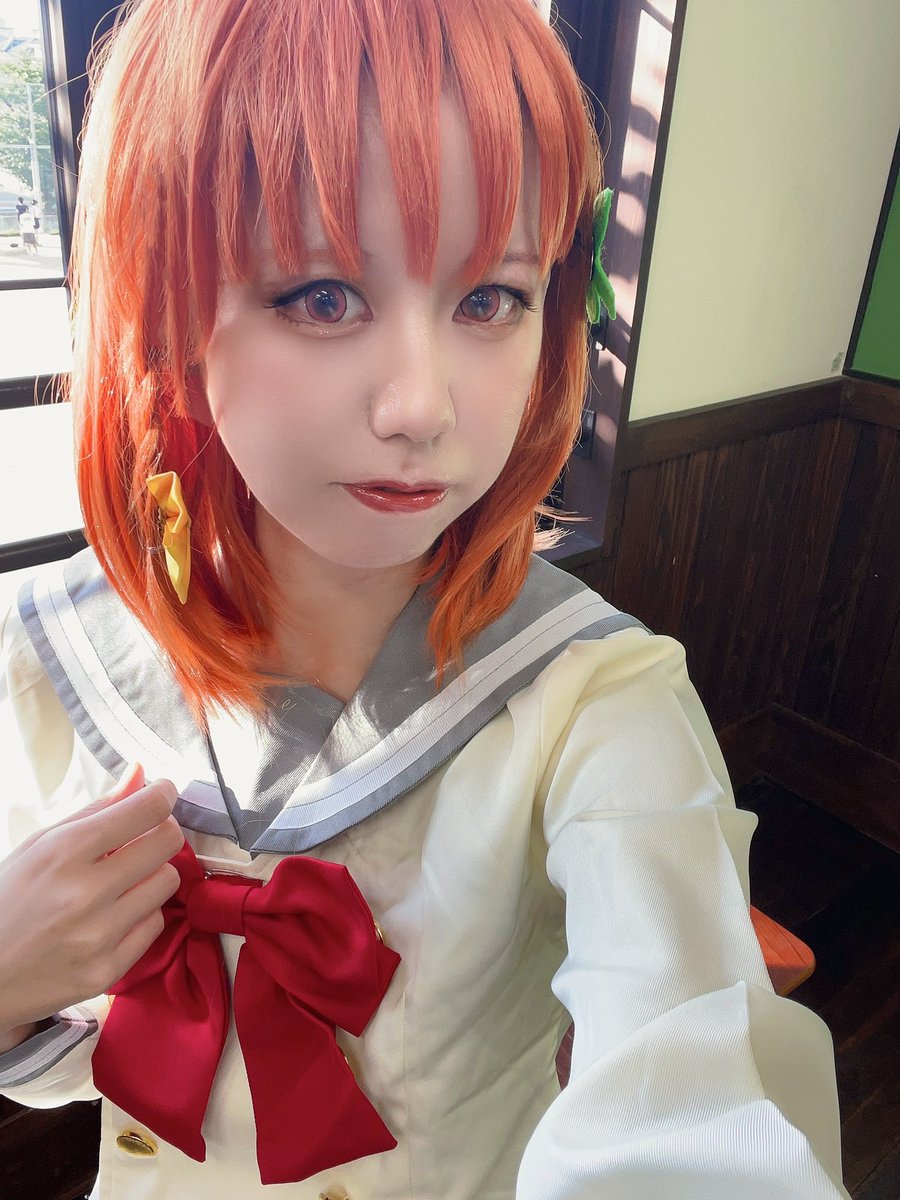 この間の双葉小で千歌ちゃんもしてた🍊 ウィッグ改良してよかった✌️ #コスプレ #Cosplay