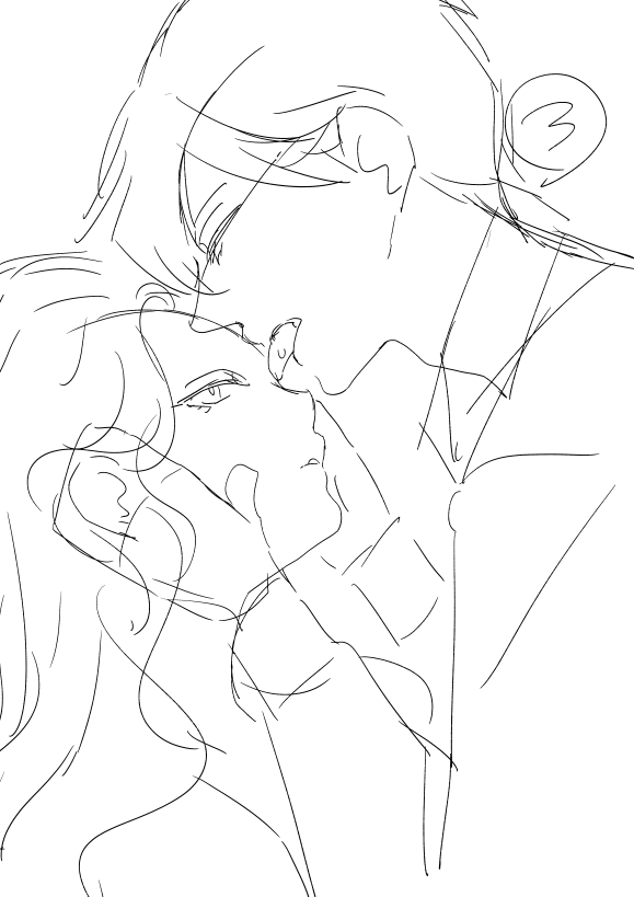 #このタグを見た人はラフ画とその完成絵を見せる 配信始まった作品載せてみます ラフのラフさよ……いつもすいません…