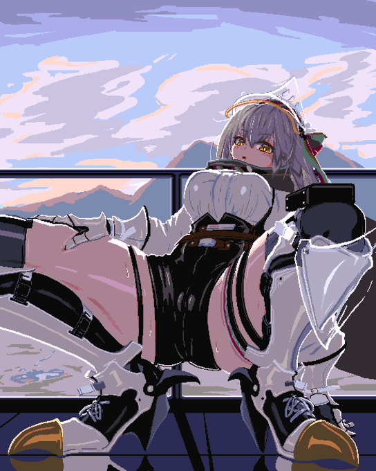9 59 脚でお仕置きするシーさん #アークナイツ #明日方舟 #Arknights #ドット絵 #pixelart 22/06/06 16:24