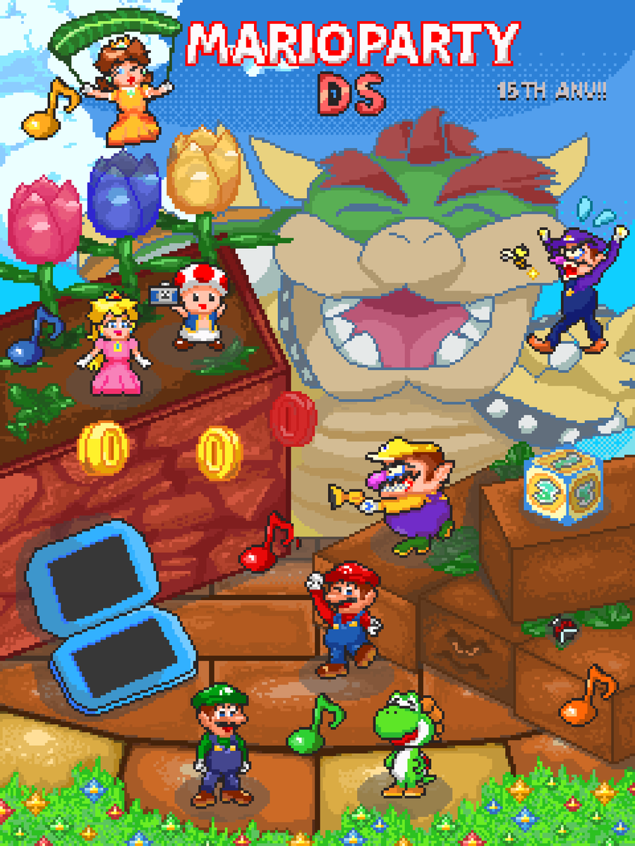 「マリオパーティDS」発売15周年おめでとう!! ゲームは一人でも、みんなでも遊ぶと楽しい!! Happy 15th anniversary for Mario Party DS!! #ドット絵 #PixelArt #スーパーマリオ #マリオパーティ #DS #SuperMario #MarioParty