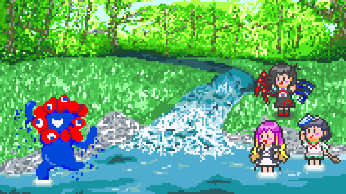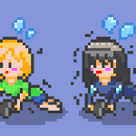 #ドット絵 #PixelArt #東方Project #TouhouProject #聖白蓮 #村紗水蜜 #封獣ぬえ #ミャクミャク 「アレは何?妖怪かしら?」 「ミャクミャクとした水の力を持つみたいです!」 「姿の定まらないふしぎな生き物ね」