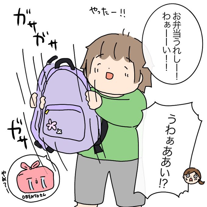 6 182 芋掘り遠足の季節ですね!ところでこちらは久しぶりのお弁当に感激して、リュックごとシャッフルかます5歳児です。 #育児絵日記 22/10/20 21:03