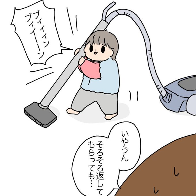0 1 掃除機を仲間として認識した末っ子くん(この間まで号泣してた #育児絵日記 23/02/15 21:15