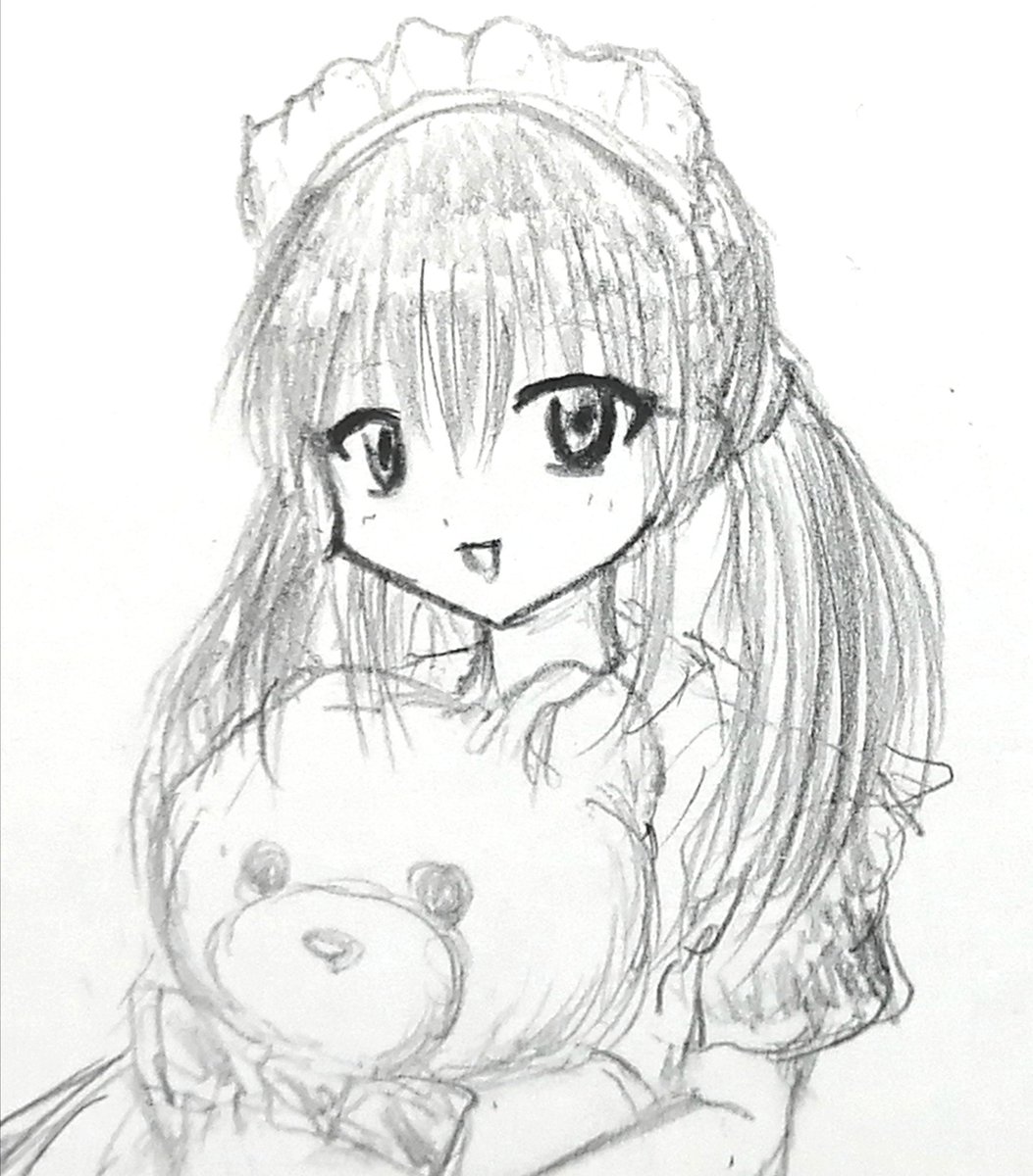 メイド風衣装娘イラスト。 アナログ鉛筆です✎ #可愛いと思ったらRT #イラスト #イラスト練習中 #絵描きさんと繋がりたい #イラスト好きな人と繋がりたい #みんなで楽しむTwitter展覧会 #メイド #イラスト相互フォロー