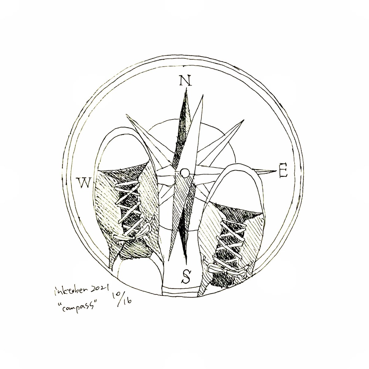 3 10 10/15 "compass" 正しい方角だと信じて #inktober2021 #inktober 21/10/16 22:59