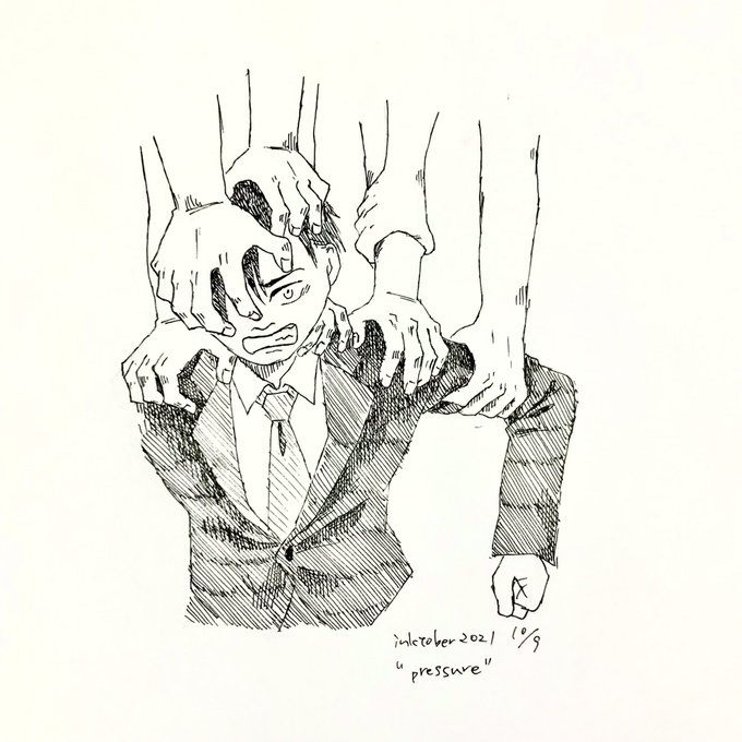 0 7 10/9 "pressure" それでも立っていたい #inktober2021 #inktober 21/10/09 22:48