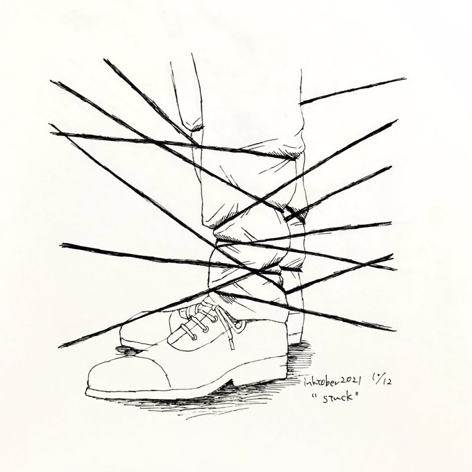 0 9 10/12 "stuck" 前にも後ろにも #inktober2021 #inktober 21/10/12 22:03