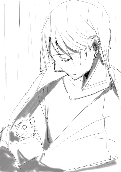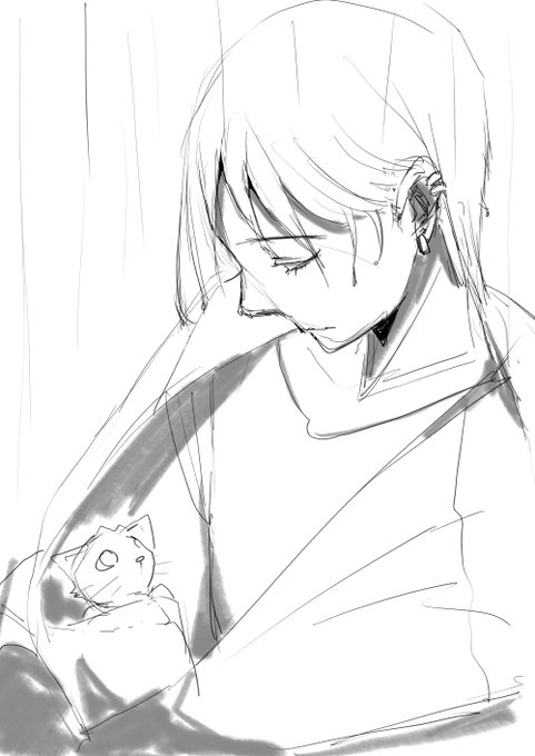 4 37 3ヶ月お休みした復帰1枚目の落描き……相当な劣化だなあ。ソフトも育てていかないと、ツールがなさ過ぎる…… #rkgk #猫 #少年 23/06/16 21:00