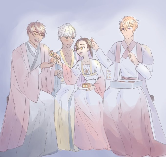 Happy Mid Autumn Festival!!! ☺️ Let's share some mooncakes together! 🥮🥮 I wanna design better hanfu for them in the future, but this will do for now-- #obeyme #obeymediavolo #obeymemammon #obeymemc #obeymebeelzebub #obeymefanart