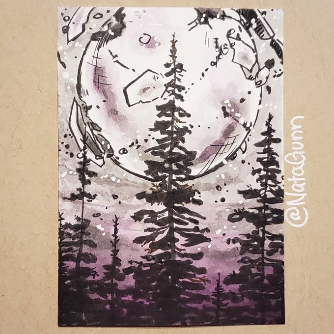 #inktober2019 #kobmobtober19 prompt day 10 ; nature This is inspired by a painting I saw on a wine and paint website. With the exception of the traveler being the moon. I had saved it and wanted to redo it as my own version, so heres a smol card instead.