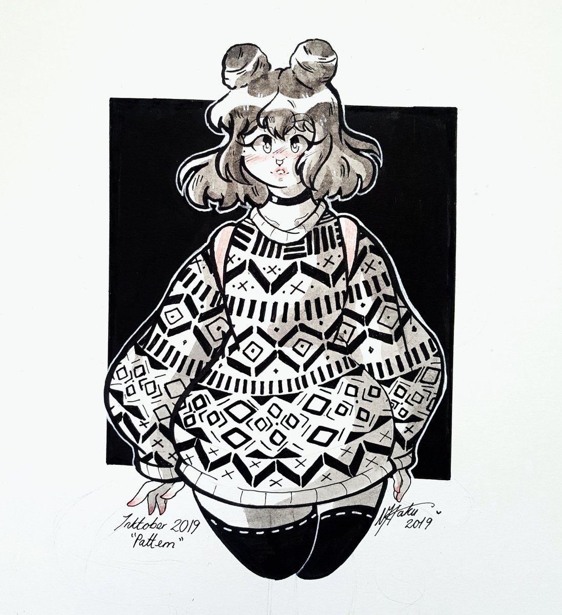Inktober prompt: pattern ✒ ~ I decided I wanted to draw at least one inktober entry this year! I liked today's prompt and instantly imagined a girl in an oversized sweater, and I think it came out quite well! ~ #inktober #inktober2019 #pattern #manga #illustration #myart #ink