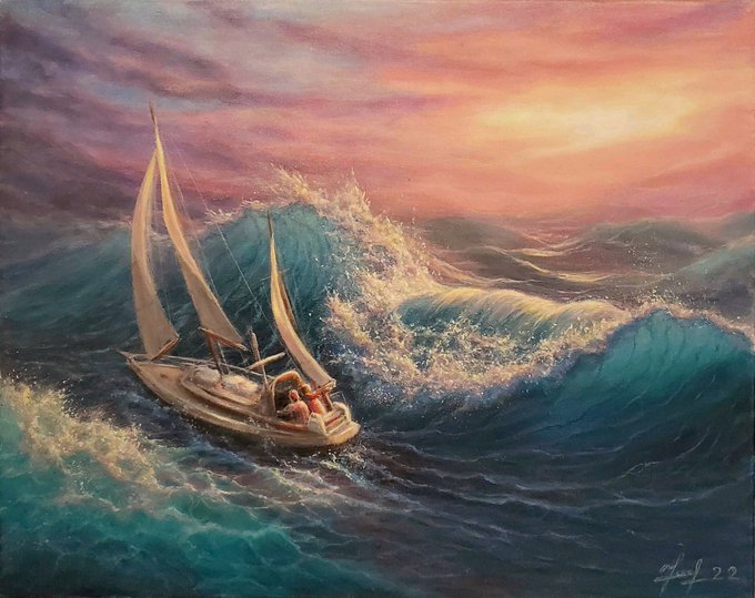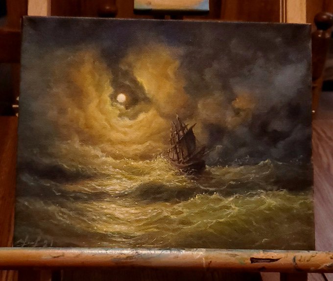 #TheArtistChallenge Nominated by @960Sonia Posting my Art every day for 10 days. The goal is to promote positivity, camaraderie, and the ❤ of Art! Today I nominate @ktboldy My Day 8 - A small study"Ship in the Storm" Acrylic 8x10 #art #ArtistOnTwitter #painting