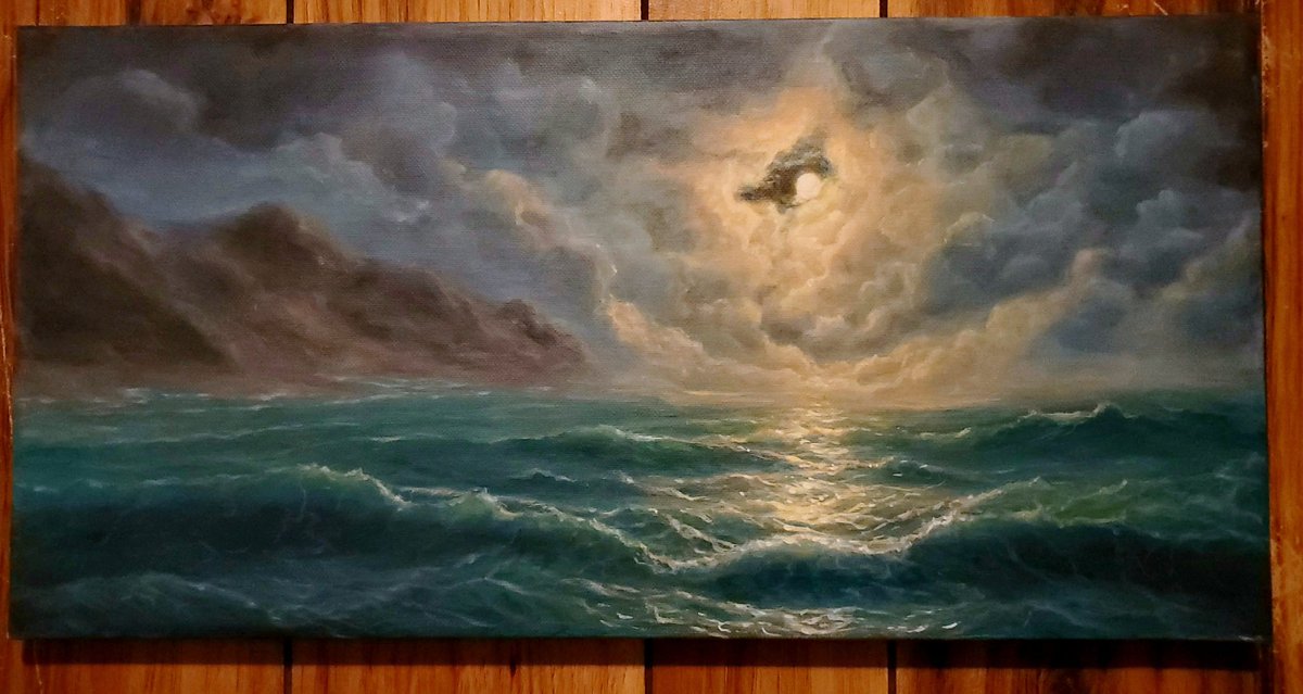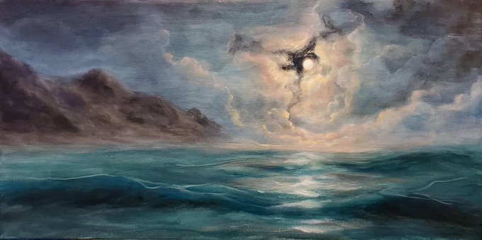 #TheArtistChallenge Nominated by @960Sonia Posting my Art every day for 10 days. The goal is to promote positivity, camaraderie, and the ❤ of Art! Today I nominate @NdTVK8AY7mtVwRM My Day 6 - "Breaking in the Moonlight" Acrylic 30x24 #art #ArtistOnTwitter #painting