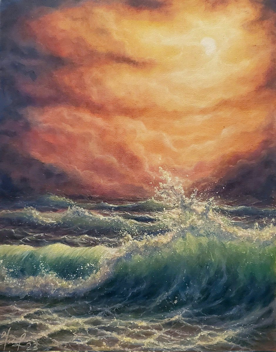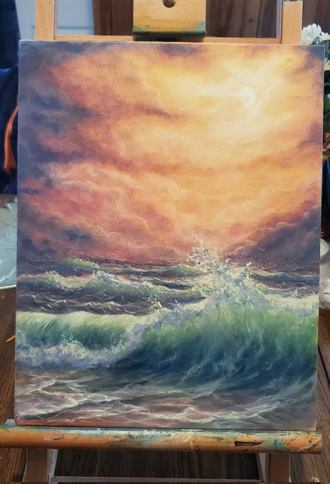 I think I will call this painting finished. Might still fix a couple of things. "Caught in the Wave" Acrylic 16x20 #painting #artist #ArtistOnTwitter