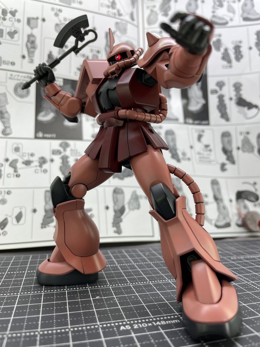 HGUC シャア専用ザク 完成しました!! ククルスドアン観なきゃ笑 このキット結構動くのね!なんか旧08小隊のザクの可動範囲のイメージしかなかったから笑 ただプラの関節ばかりだからそのうち削れそう(⌒-⌒; )特に手首。 #ガンプラの画像貼るとRTされると聞いて #ガンプラ