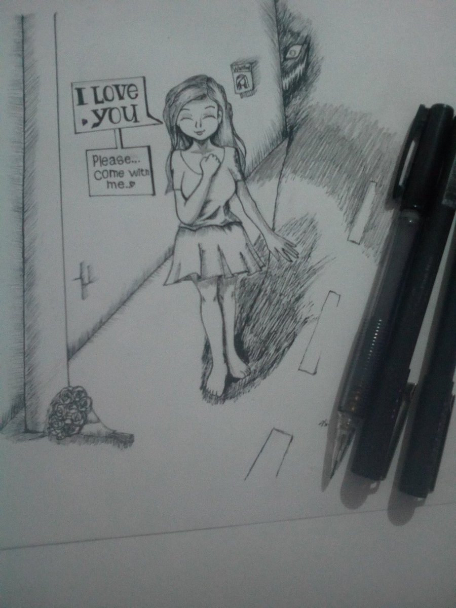 Día 14: Overgrown les presento a Emily una pequeña niña Que nació con la desdicha de tener cuernos , es un poco descuidada y ensucio su blusa por tanto un amable joven le tuvo en pasar su camisa #Inktober #inktoberday14