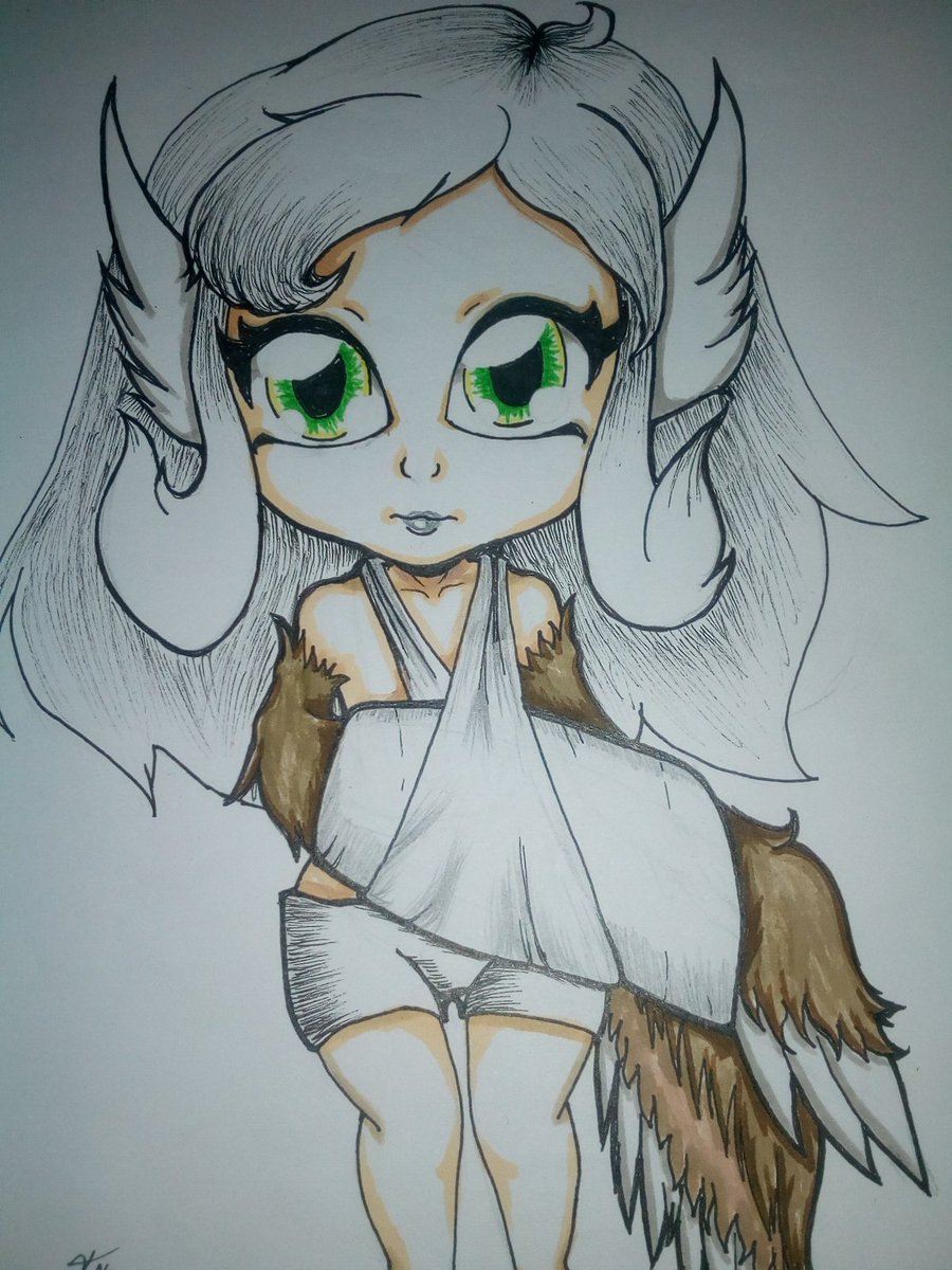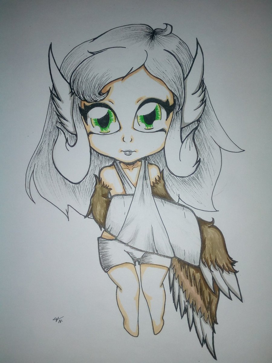 Día 29: Injured Hice a esta pequeña chica ave que tiene su alita lesionada , espero que les guste #Inktober2019