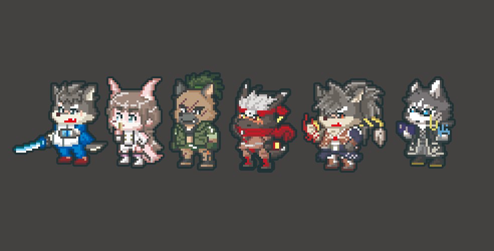 そろそろケモキャラぽちぽち作りたいけどどのキャラ作ったらいいんやろか…多すぎて迷い中 #放サモ #ドット絵